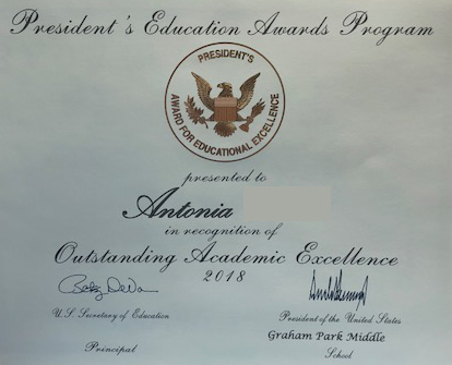We wanted to share how proud we were of our previous patient Antonia and her accomplishments since finishing Vision Therapy. Antonia just received the Gold Presidential Award for Academic Achievement and we couldn’t be happier.
