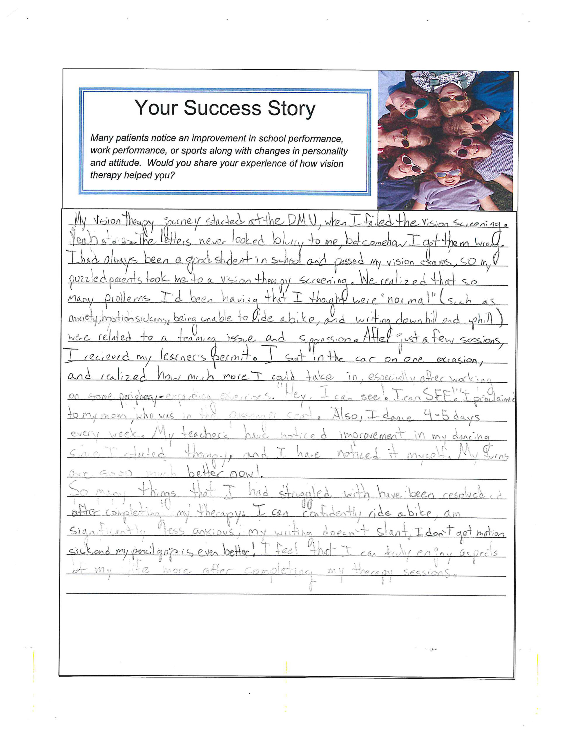 Virginia Vision Therapy Center > Success Stories > Success Stories > Success Story of “Lily”